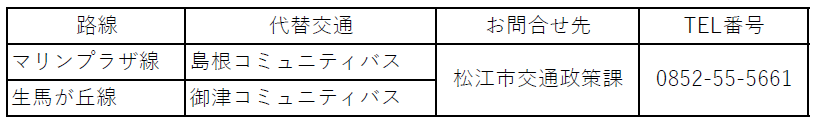 【お知らせ】マリンプラザ線・生馬が丘線の運行終了及び一部バス停の廃止について