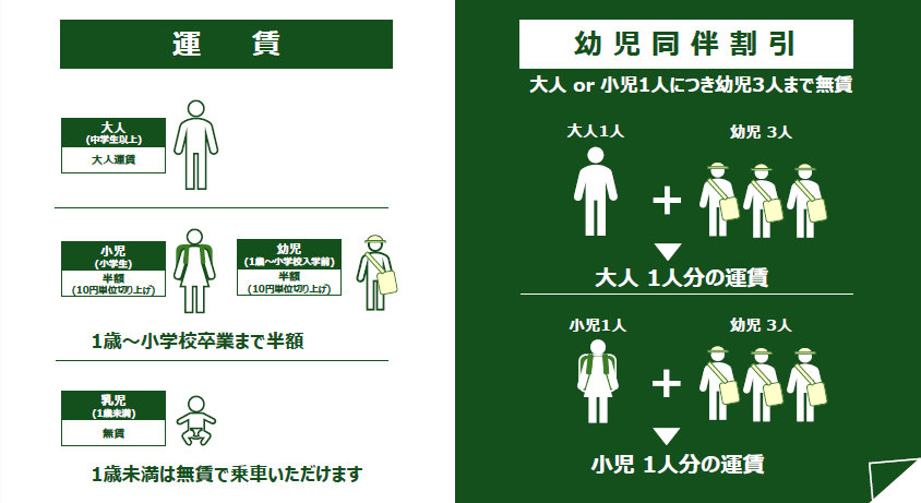 ※小児運賃は、大人運賃の半額(10円未満は切り上げです。)